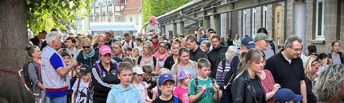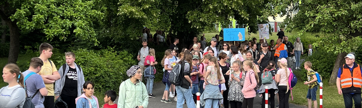 Auch schon Tradition: Am Freitagabend ist der Marsch aller Teilnehmer vom Ostring durch die Stadt über den Marktplatz. Als Anerkennung ihrer Taten erhalten die Wanderer oftmals auf dem Weg zum Schulhof von Angehörigen und Freunden noch Blumen.
