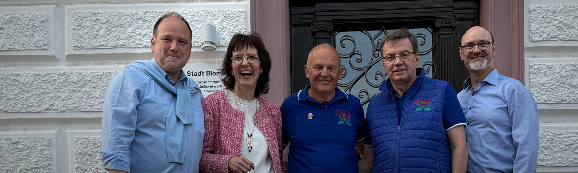 Am Rathaus werden alle Finisher vom Bürgermeister der Stadt Blomberg, dem Vorsitzenden des Organisationskomitees und dem 1. Vorsitzenden des TV Blomberg begrüßt. Dann geht’s weiter bis zum Schulhof. Der Vier-Abende-Marsch findet dort seinen Abschluss, nicht jedoch, ohne von seinen Heldentaten zu erzählen. Auch die eine oder andere Kalorie kann hier zu sich genommen werden.